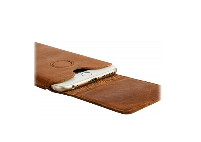 Genuine cowhide leather carrying case with magnetic closure for your iPhone 6. Made of vintage cowhide with durable and exquisite stitching. Timeless design, precision fit with all-round protection for your iPhone. Accurate cutouts for microphones and charging, incredibly slim and lightweight design with a perfect and secure fit.