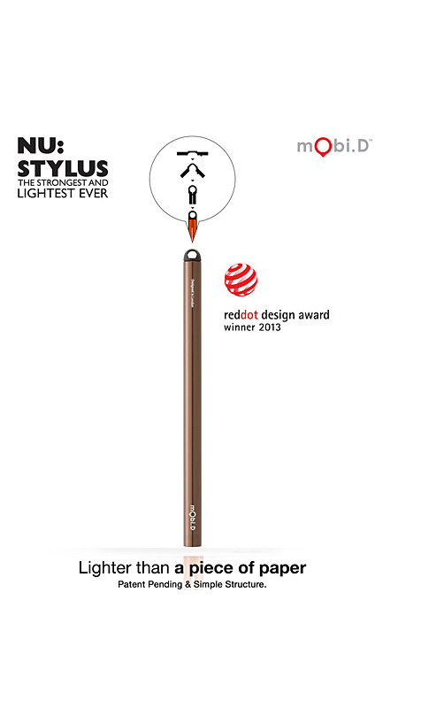 mobi.D NU stylusAward-winning design - 2013 Red Dot Design Award Winner. Designed for all capacitive touch screen. One of the lightest and strongest stylus ever. Its the ultimate usb pen for your iPhone, iPad, smartphones and tablets